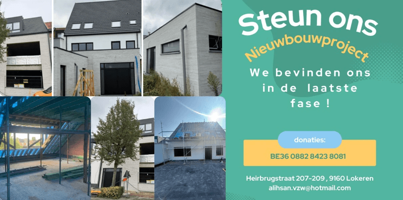 Als socio-culturele vereniging Al Ihsan hebben wij enige tijd geleden, dankzij de gunst van Allah en de massale steun van onze gemeenschap, het gebouw waarin onze werking gevestigd was kunnen aankopen. Het gebouw verkeerde echter in sterk verouderde en zeer slechte staat. Om onze activiteiten te kunnen blijven verderzetten, was een grondige vernieuwing dan ook dringend noodzakelijk. Met de hulp en vrijgevigheid van onze gemeenschap hebben we middelen kunnen inzamelen om het gebouw volledig af te breken en de bouw van een nieuw pand te starten.